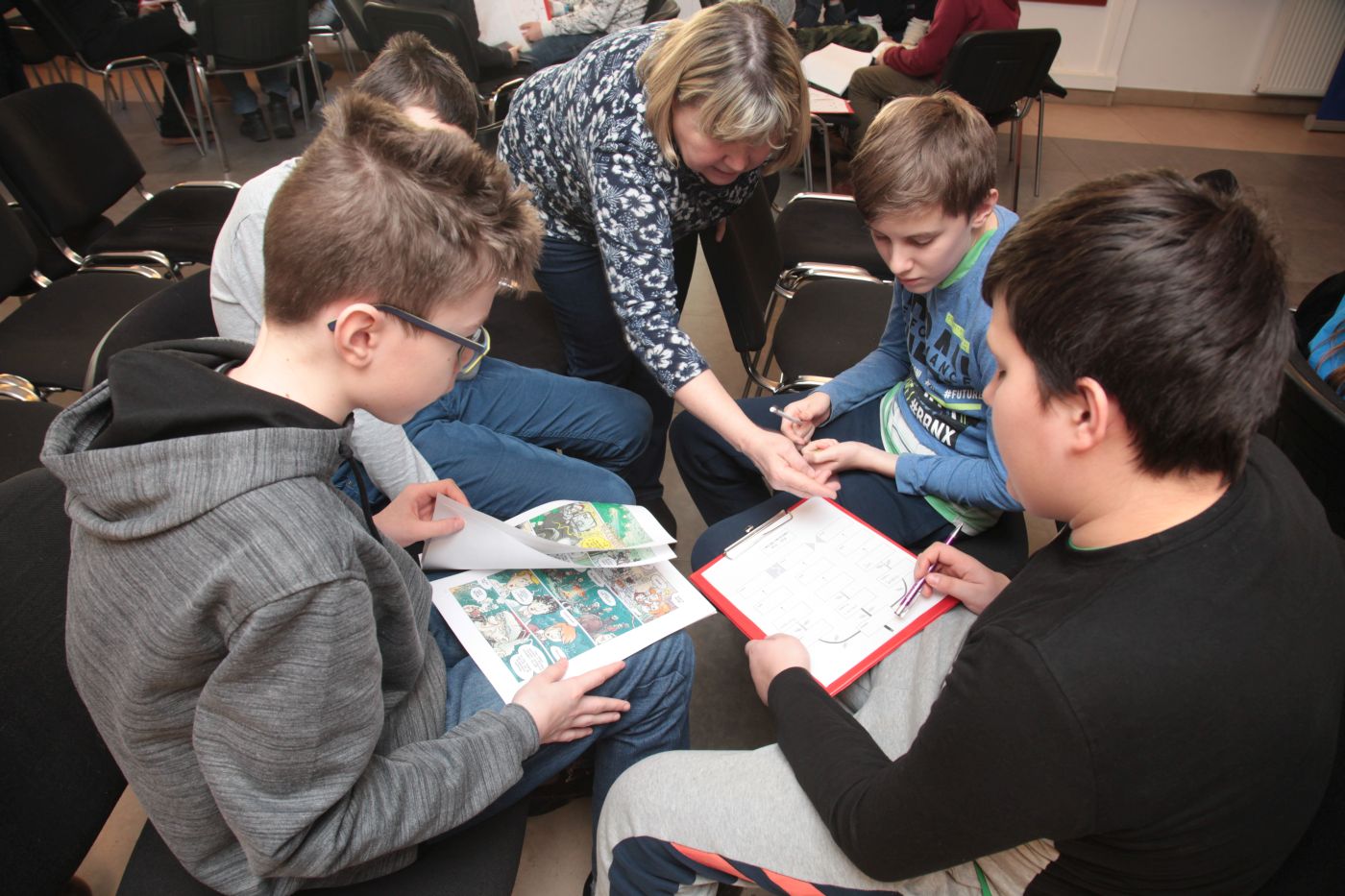 W czasie warsztatów uczniowie pracowali na fragmentach komiksu poznając poszczególne losy bohaterów. Na koniec w nagrodę za aktywność wszyscy uczestnicy otrzymali komiks na własność.