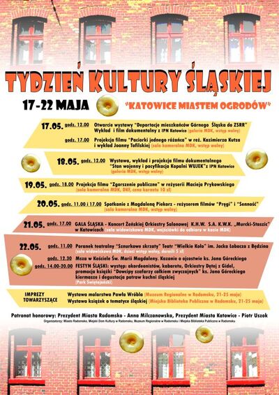 W dniach 17–22 maja 2011 r. w Miejskim Domu Kultury w Radomsku (ul. Brzeźnicka 5) trwa cykl imprez w ramach „Tygodnia kultury śląskiej”, zorganizowanego przez Miasto Radomsko, Miejski Dom Kultury w Radomsku, Muzeum Regionalne w Radomsku oraz Miejską Bibliotekę Publiczną w Radomsku. W imprezie biorą udział historycy Oddziału Instytutu Pamięci Narodowej w Katowicach.