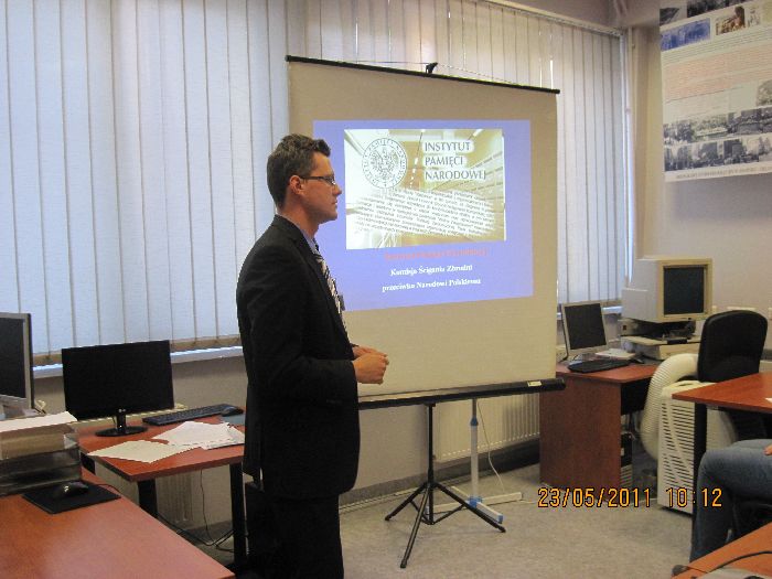 23 maja 2011 r. w siedzibie delegatury IPN w Bydgoszczy odbyły się kolejne zajęcia dla młodzieży w ramach cyklu „Lekcje archiwalne. Co kryją archiwa IPN?”. Uczniowie Zespołu Szkół nr 5 w Bydgoszczy poznali specyfikę pracy Instytutu Pamięci Narodowej. Przeprowadzone zostały warsztaty źródłoznawcze, podczas których młodzież dokonała analizy różnych typów dokumentacji służb specjalnych PRL, obrazujących metody ich pracy. Zajęciom towarzyszył pokaz filmu edukacyjnego, przygotowanego przez gdański oddział IPN.