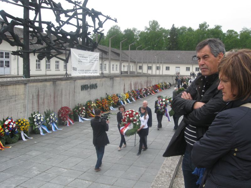 Przed złożeniem wieńców głos zabrał m.in. reprezentant rządu państwa Bawarii – sekretarz stanu w Bawarskim Ministerstwie Oświaty Thomas Kreuzer, który podkreślił, że współcześni obywatele Niemiec nie ponoszą winy za zbrodnie hitlerowskie, ale są odpowiedzialni za to, by się one nigdy więcej nie powtórzyły. Dzień wyzwolenia obozu był szczęściem dla tych, którzy przeżyli, ale jednocześnie dniem żałoby i smutku z powodu 41.500 ofiar KZ-Dachau. Obecny Przewodniczący Międzynarodowego Komitetu Dachau Peter Dietz de Loos wyraził brak zrozumienia dla niemieckiego wymiaru sprawiedliwości, który nadal uznaje dekret Hitlera z 1943 r., na podstawie którego przyznano obywatelstwo niemieckie wolontariuszom holenderskim, którzy wstąpili do SS. Uniemożliwiło to wydanie skazanego w Holandii na dożywocie Klaasa Carel Fabera. W uroczystościach uczestniczył były prezydent Chorwacji (w latach 2000-2010) Stjepan Mesic.