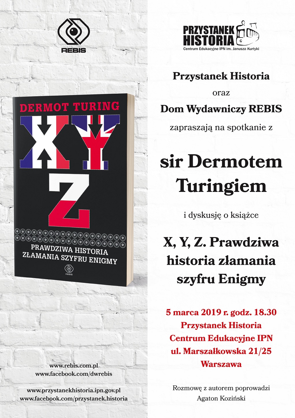 5 marca 2019 roku, w Centrum Edukacyjnym IPN „Przystanek Historia” im. Janusza Kurtyki w Warszawie, odbyło się spotkanie z sir Dermotem Turingiem – autorem książki X, Y, Z. Prawdziwa historia złamania szyfru Enigmy. Rozmowę z autorem poprowadził Agaton Koziński.