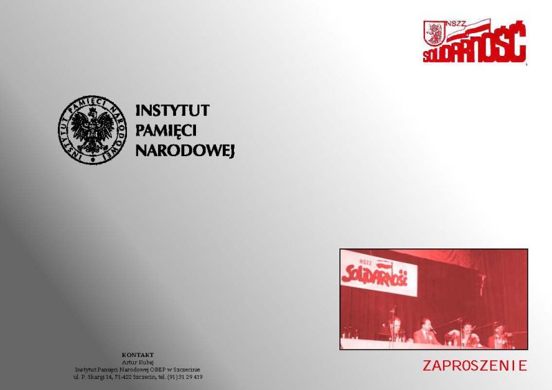 Instytut Pamięci Narodowej Oddział w Szczecinie zorganizował Ogólnopolską Konferencję „Regionalny wymiar »Solidarności« 1980–1981. NSZZ »Solidarność« Regionu Pomorze Zachodnie na tle ogólnopolskim”.