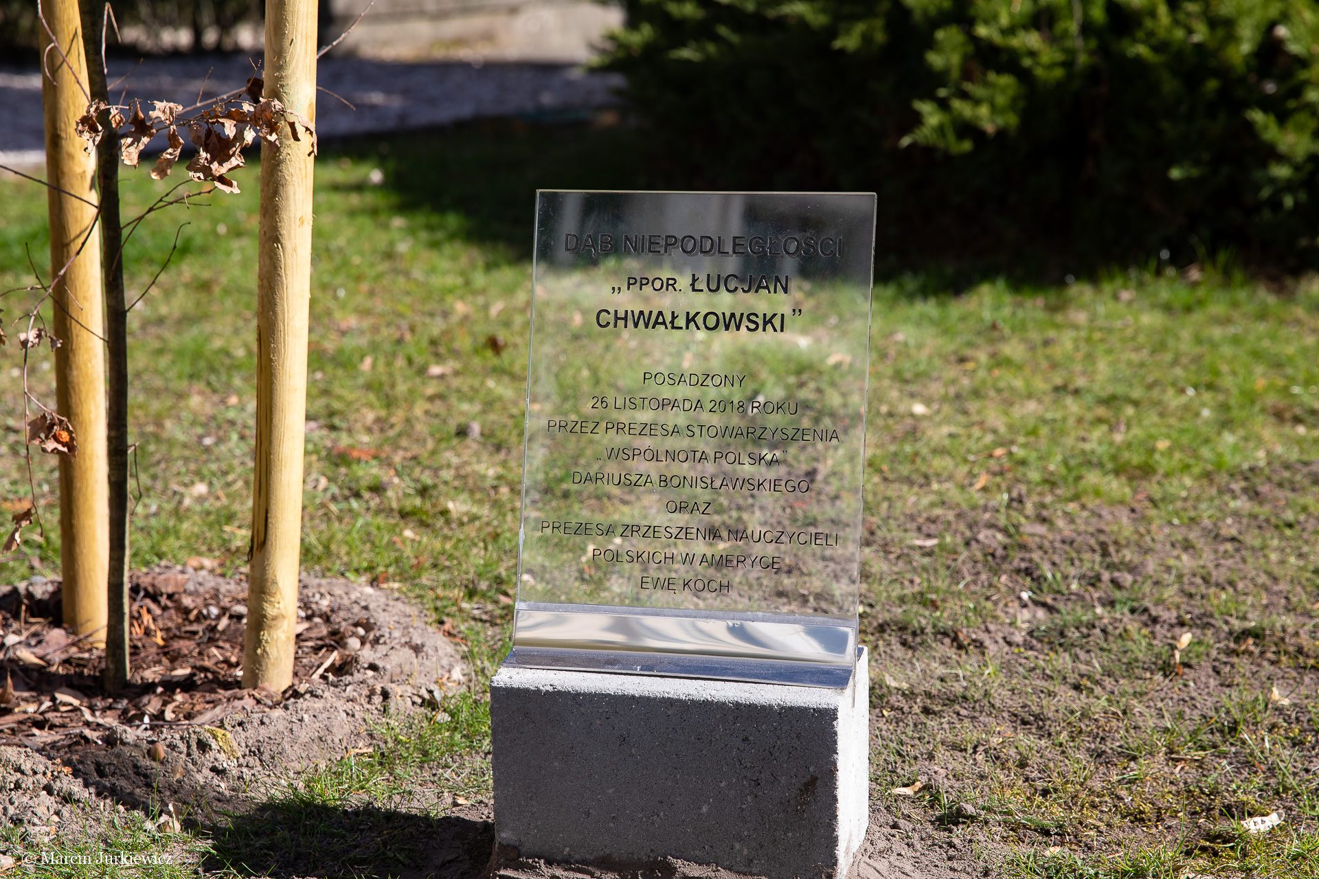 2 kwietnia 2019 r., przy siedzibie Wspólnoty Polskiej przy Krakowskim Przedmieściu 64 w Warszawie (Dom Polonii), zostały odsłonięte tabliczki przy Dębach Niepodległości, które zostały posadzone 26 listopada 2018 r. Dęby otrzymały wówczas imiona: Agnieszka Wisła i ppor. Łucjan Chwałkowski.