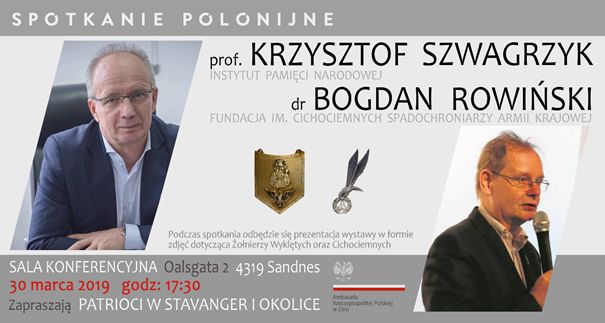 Spotkanie uświetnił, na zaproszenie organizacji Patrioci w Stavanger i okolicach, prof. Krzysztof Szwagrzyk, zastępca prezesa Instytutu Pamięci Narodowej, który wygłosił wykład zatytułowany „Misja i cel działania Biura Poszukiwań i Identyfikacji”. Prof. Szwagrzyk przybliżył specyfikę pracy Biura Poszukiwań i Identyfikacji IPN w kraju i za granicą, przedstawił sylwetki uczestników powstania antykomunistycznego i przebieg poszukiwań ich doczesnych szczątków, a także opowiedział o wysiłku i zaangażowaniu pracowników IPN i wolontariuszy w odnajdowaniu miejsc pochówku Żołnierzy Wyklętych. Zaprezentował także przebieg poszukiwań miejsc pochówku osób, które utraciły życie na skutek walki z narzuconym systemem totalitarnym lub wskutek represji bądź czystek etnicznych w latach 1917–1990.