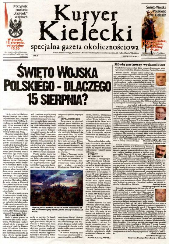 Z datą 11 sierpnia 2011 ukazał się dodatek specjalny do kieleckiej gazety codziennej „Echo Dnia”, zatytułowany „Kuryer Kielecki specjalna gazeta okolicznościowa”. „Kuryer Kielecki” powstał we wspólpracy z Delegaturą IPN w Kielcach.