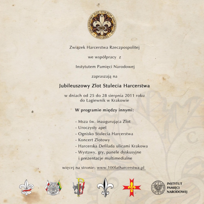 Związek Harcerstwa Rzeczypospolitej oraz Instytut Pamięci Narodowej zaprosiły na Jubileuszowy Zlot Stulecia Harcerstwa, który odbył się w dniach 25–28 sierpnia 2011 roku w krakowskich Łagiewnikach. W uroczystym rozpoczęciu Zlotu wziął udział prezes Instytutu Pamięci Narodowej dr Łukasz Kamiński.