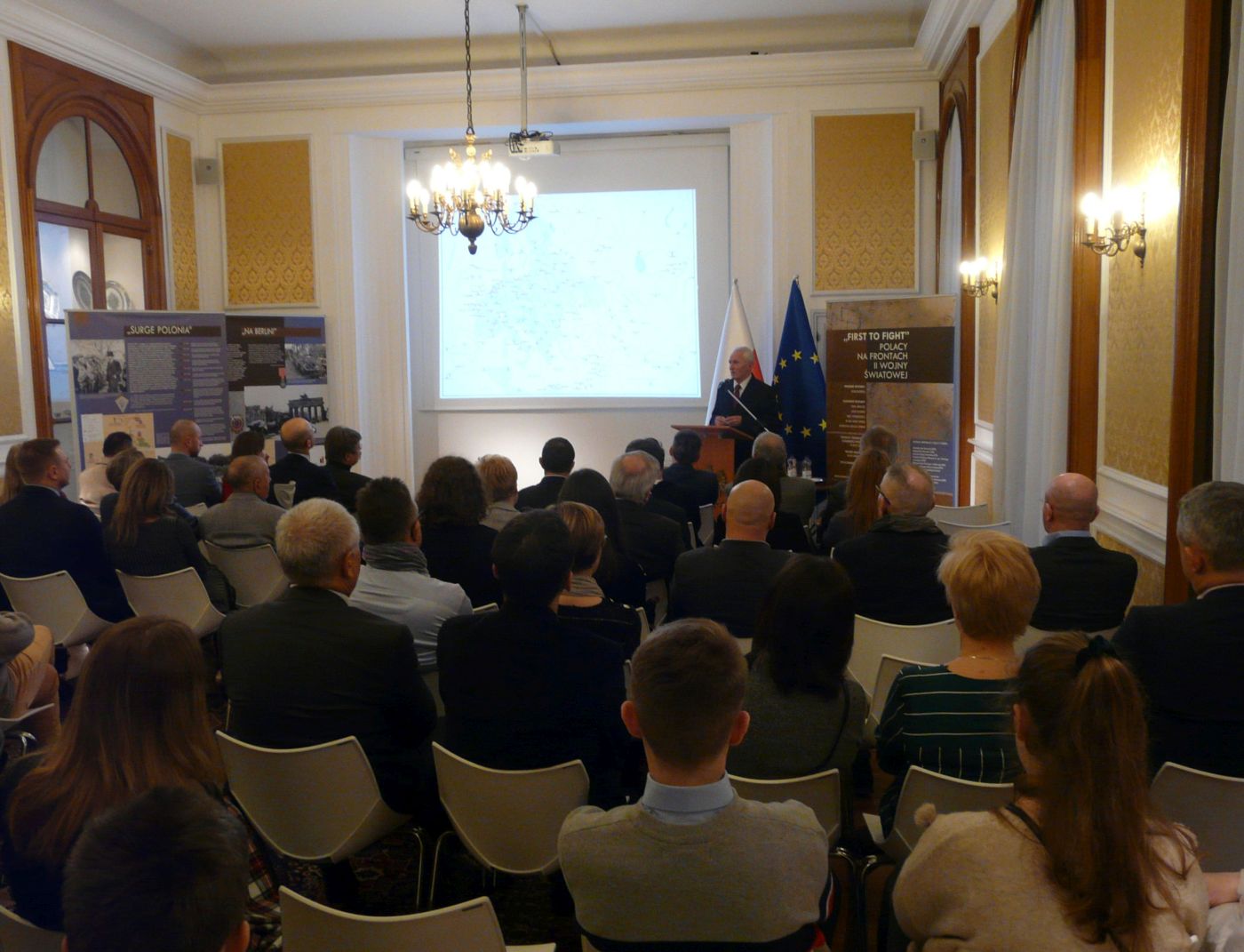 W dniu 28 marca 2019 r. Artur Orzechowski, Ambasador Rzeczypospolitej Polskiej w Brukseli otworzył w budynku ambasady przy ul. Gaulois 29 wystawę „First to fight. Polacy na frontach II wojny światowej”. Ekspozycja gościła w tym miejscu do 30 marca w ramach Przystanku Historia. Została przygotowana przez Oddziałowe Biuro Edukacji Narodowej IPN w Łodzi. Jej autorzy zaprezentowali wkład Polaków w działania zbrojne podczas II wojny światowej. Na otwarcie ekspozycji przybyli licznie członkowi Polonii belgijskiej. Szczególnym zainteresowaniem cieszyły się fragmenty wystawy opowiadające o szlaku bojowym 1. Dywizji Pancernej pod dowództwem gen. Stanisława Maczka. Dzieci i wnuki bohaterów spod Bredy i Falaise odnajdywały na planszach historię swoich dziadków znane ze wspomnień i książek. Wystawę wzbogacił wykład dr. hab. Janusza Wróbla z OBBH IPN w Łodzi pt. „Na obcej ziemi za wolność Polski. Polskie Siły Zbrojne na Zachodzie 1939-1945”.