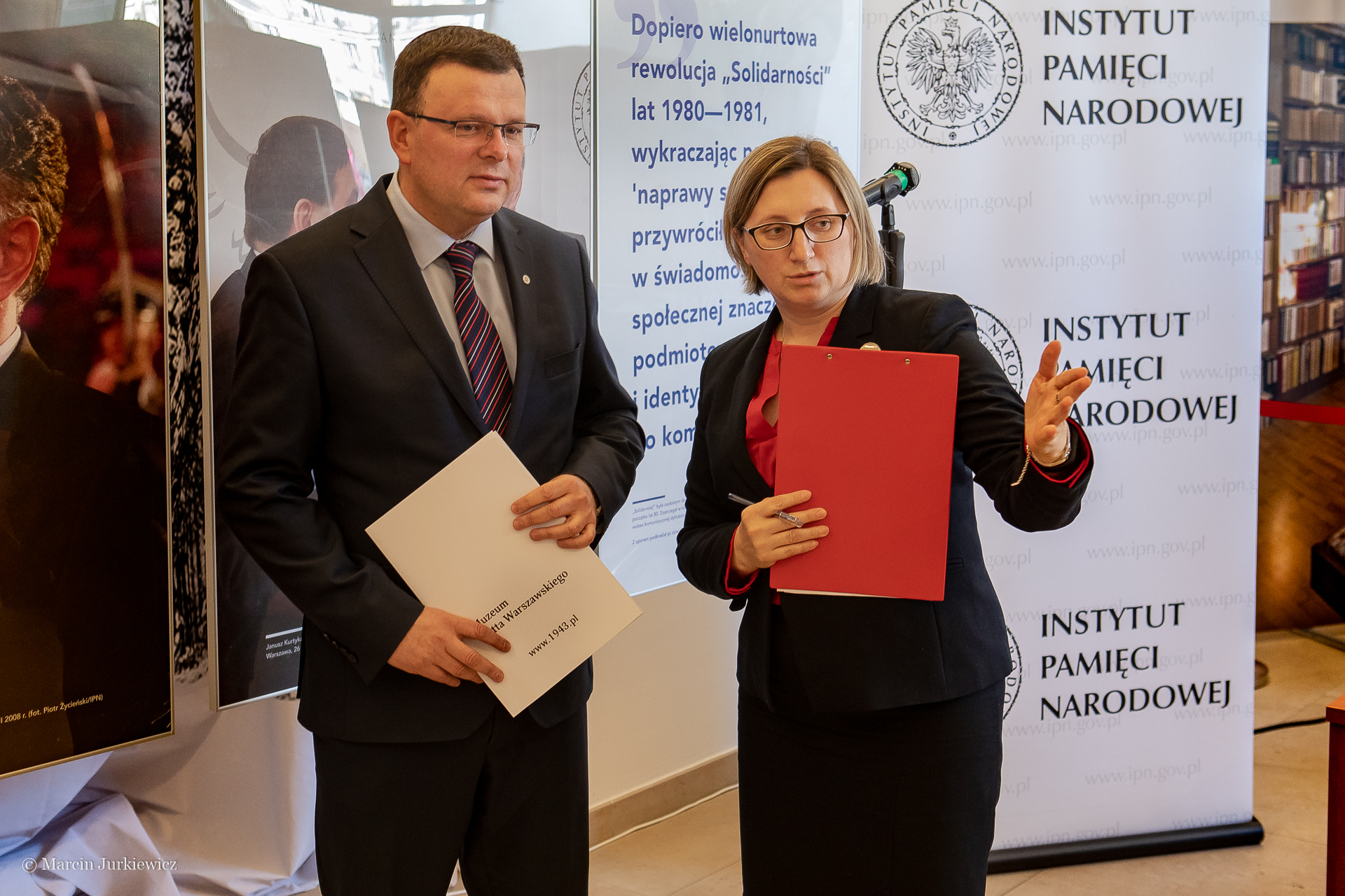 Po prezentacji filmu z materiałów Archiwum IPN, prezes IPN dr Jarosław Szarek oraz dyrektor Muzeum Getta Warszawskiego Albert Stankowski podpisali umowę o współpracy pomiędzy kierowanymi przez siebie instytucjami.