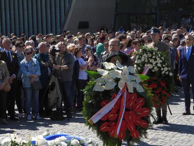 Następnie delegacje złożyły wieńce przed pomnikiem Bohaterów Getta. Dyrektor Adam Siwek oddał hołd bohaterom powstania, składając wiązankę w imieniu Instytutu Pamięci Narodowej. Na zakończenie uroczystości Chór Dziecięcy Miasta Łodzi wykonał utwór „Warszawo ma”.
