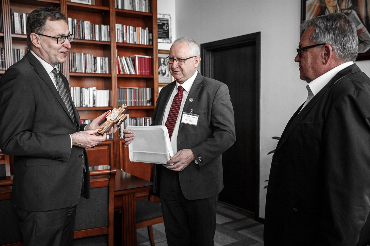 Podczas wizyty prezes Adam Gajkowski uhonorował prezesa Jarosława Szarka Krzyżem „Golgota Wschodu”. Krzyż zawiera grudki ziemi uświęconej krwią polskich bohaterów, którzy zginęli w Katyniu, Miednoje, Bykowni, Charkowie i Smoleńsku. Odznaczenie zostało przyznane za całokształt działalności na rzecz popularyzacji polskiej historii, kultywowanie polskich tradycji i obronę dobrego imienia Polski za granicą. Prezes IPN podziękował za wyróżnienie, które uznał za zobowiązanie do dalszej rzetelnej, wytężonej pracy na rzecz Polski, wypełniania misji Instytutu, bazującej na obowiązkach ustawowych IPN.