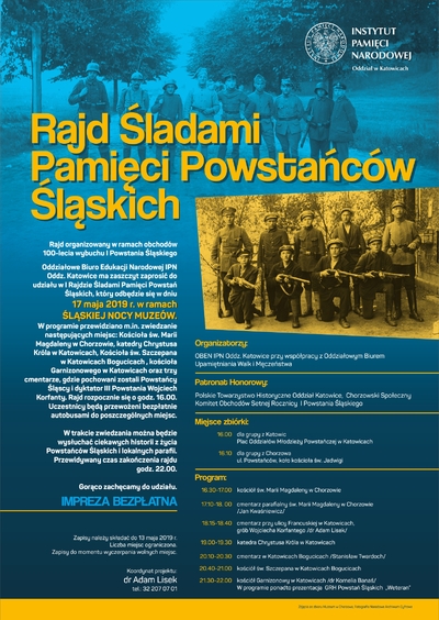 W ramach Nocy Muzeów Oddziałowe Biuro Edukacji Narodowej IPN w Katowicach wraz z Oddziałowym Biurem Upamiętniania Walk i Męczeństwa IPN w Katowicach zorganizowało 17 maja 2019 r. I Rajd Śladami Pamięci Powstań Śląskich, który obejmował miejscowości: Chorzów oraz Katowice.