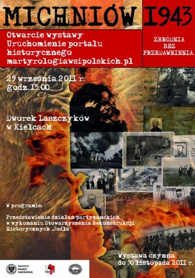 29 września 2011 r. odbyło się w Dworku Laszczyków w Kielcach uroczyste otwarcie wystawy „Michniów 1943. Zbrodnia bez przedawnienia”. Otwarciu wystawy towarzyszyło uruchomienie portalu internetowego: martyrologiawsipolskich.pl który dostępny jest na stronie internetowej IPN-KŚZpNP. W programie znalazło się też przedstawienie działań partyzanckich przez Stowarzyszenie Rekonstrukcji Historycznych „Jodła” (dziedziniec Dworku Laszczyków)