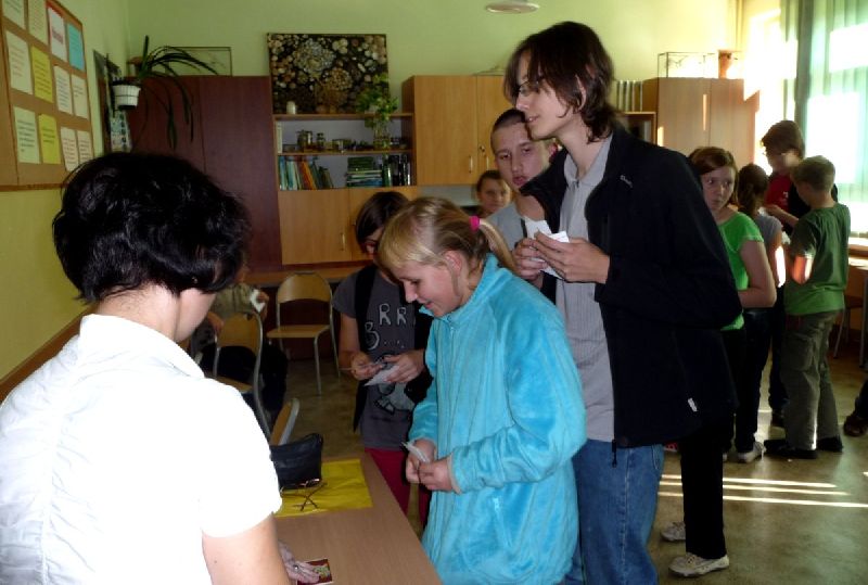 Prezentacja miała charakter inscenizacji, w której uczniowie starali się odtworzyć „klimat kolejkowy” z lat PRL-u.
