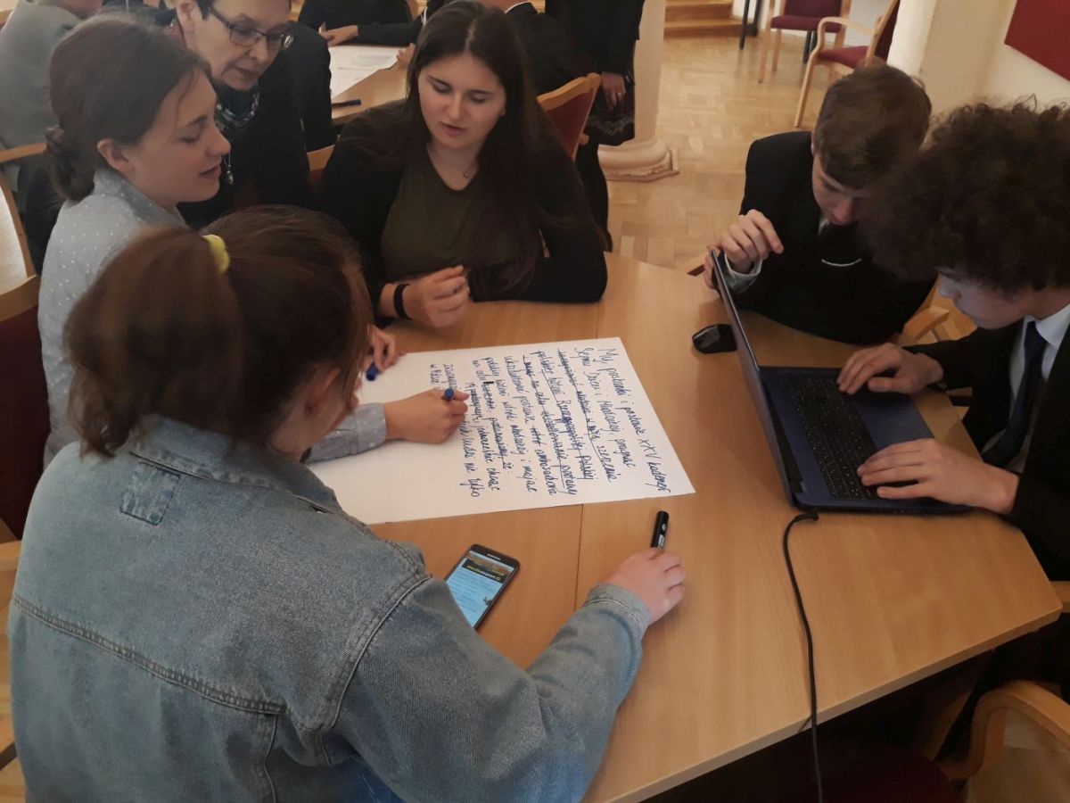 My, posłanki i posłowie XXV kadencji Sejmu Dzieci i Młodzieży, zainspirowani spuścizną naszych przodków oraz zaszczyceni możliwością reprezentowania młodych Polaków, pragnąc ukształtować postawę ambasadora polskiego dziedzictwa narodowego wśród młodzieży i mając na celu jego popularyzację, jednocześnie chcąc zaangażować młodych ludzi w promocję historii Rzeczypospolitej w Polsce i za granicą postanawiamy, że…. – tak brzmi projekt preambuły do uchwały wypracowany przez młodzież pierwszego dnia posiedzeń komisji.