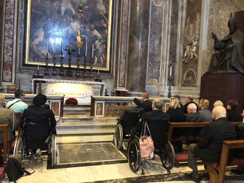 Przybyli na uroczystości weterani oraz delegacja polska przy grobie Jana Pawła II w bazylice św. Piotra w Rzymie, 16 maja 2019 (fot. UdsKiOR)