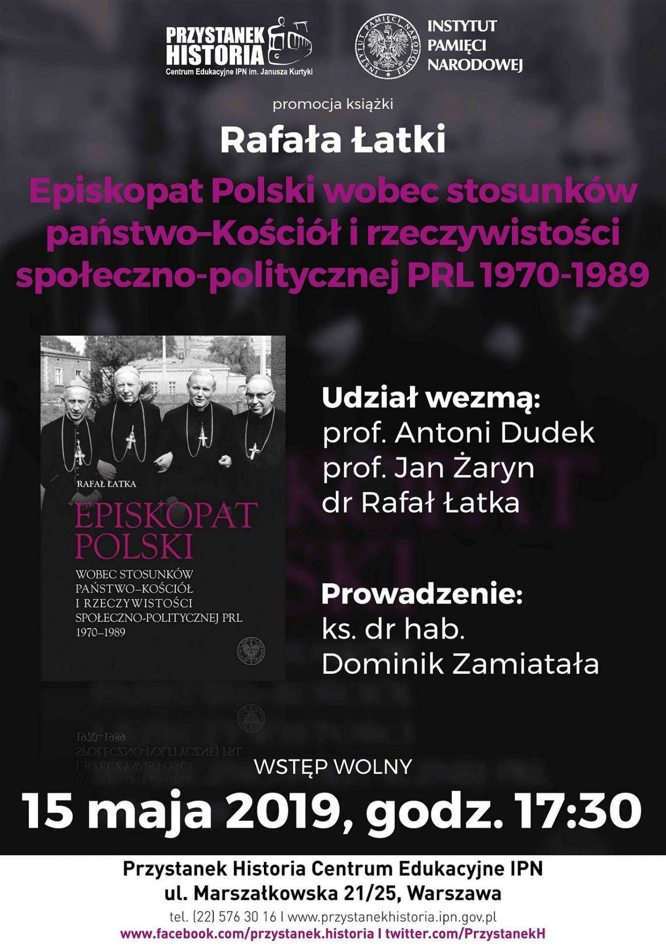 15 maja 2019 r., w Centrum Edukacyjnym IPN im. Janusza Kurtyki „Przystanek Historia” w Warszawie, odbyła się promocja książki Rafała Łatki Episkopat Polski wobec stosunków państwo–Kościół i rzeczywistości społeczno-politycznej PRL 1970–1989.