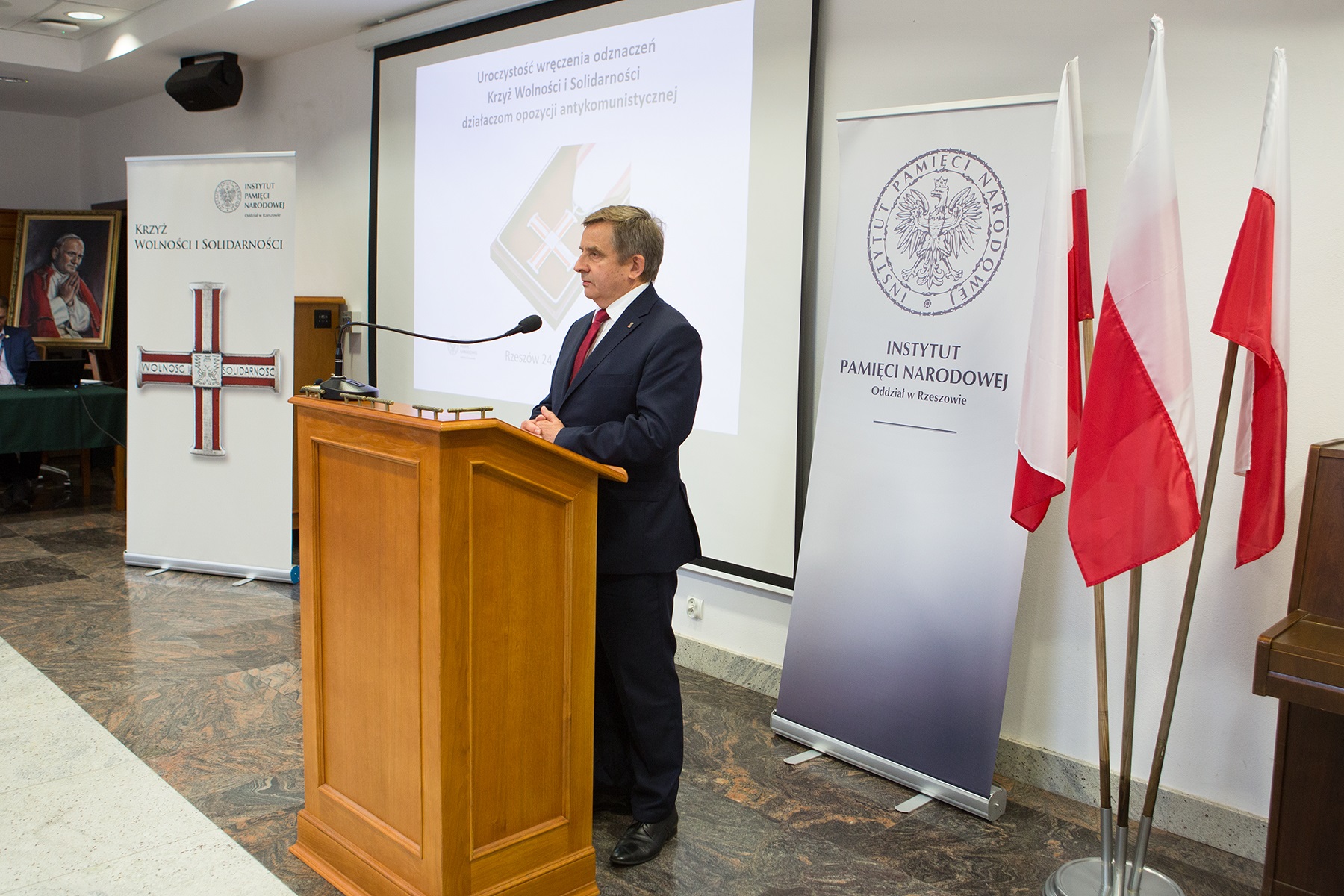 Osoby odznaczone Krzyżem Wolności i Solidarności podczas uroczystości w Rzeszowie w różny sposób i na różnych polach przyczyniały się do odzyskania przez nasz kraj wolności i niepodległości. Przesłanki niełatwego wyboru przeciwstawienia się jak wówczas wydawało się wszechmocnej władzy komunistów bywały bardzo różne. U niektórych były to tradycje rodzinne, wartości wyniesione z domu, wierność religijnym przekonaniom, u innych niezgoda na obserwowaną wokół siebie niesprawiedliwość, panujące powszechne zakłamanie oraz prześladowanie za niezależne postawy i wygłaszane nieprawomyślne poglądy. Katalizatorem tych niepodległościowo-wolnościowych postaw było powstanie niezależnych związków zawodowych w zakładach pracy oraz związków rolniczej „Solidarności” na wsi, a także niezależnych organizacji takich jak Niezależne Zrzeszenie Studentów. Działania te przybierały zróżnicowane formy: poczynając od sierpniowych strajków w których wielu z tego grona brało osobisty udział, poprzez tworzenie struktur niezależnych organizacji, które często przyjmowały wiele mówiącą, piękną nazwę „Solidarność”, aż po niewielkie inicjatywy środowiskowe np. Kluby Inteligencji Katolickiej. Działania te napotykały na liczne opory ze strony komunistycznej władzy zwłaszcza na wsi. Aby ten opór przełamać konieczne były nieraz strajki, zwłaszcza te najbardziej znane zakończone porozumieniami rzeszowsko-ustrzyckimi z 1981 roku w których kilkoro spośród odznaczonych brało osobiście udział.
