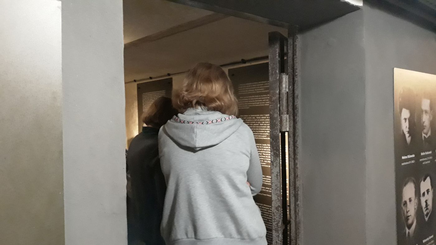 18 maja 2019 roku uczestnicy projektu „Śladami wojennych dramatów – edukacja w miejscach pamięci” odwiedzili Muzeum Martyrologii „Pod Zegarem” w Lublinie. W czasie lekcji muzealnej uczestnicy projektu zapoznali się ze znajdującą się tam ekspozycją, jak również dzięki uprzejmości kierownik muzeum – Barbary Oratowskiej obejrzeli film dokumentalny o życiu i twórczości Grażyny Chrostowskiej, więźniarki niemieckiego obozu w Ravensbrück, zatytułowany „Za kratą są zielone drzewa…”