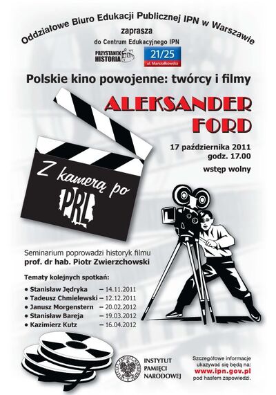 Aleksander Ford przed 1939 r. był jednym z najciekawszych twórców polskiego kina. Wykorzystując swój talent artystyczny sięgał do tematyki społecznej, tworząc filmy oryginalne i cenione nie tylko w Polsce. Realizował również filmy poświęcone tematyce żydowskiej. Przed wojną był współzałożycielem Stowarzyszenia Miłośników Filmu Artystycznego START i Spółdzielni Autorów Filmowych, a w pierwszej połowie lat 40. współorganizatorem Czołówki Filmowej I Dywizji WP. Po II wojnie światowej współtworzył ówczesny porządek kinematograficzny, będąc jednym z najpotężniejszych ludzi w polskim kinie. Nakręcił największy polski przebój filmowy – „Krzyżaków”. W drugiej połowie lat 60. stał się ofiarą rozliczeń w kinematografii, a w konsekwencji antysemickiej kampanii 1968 r. został zmuszony do wyjazdu z Polski. Nigdy nie odnalazł się na Zachodzie, mimo że zrealizował tam kilka filmów.