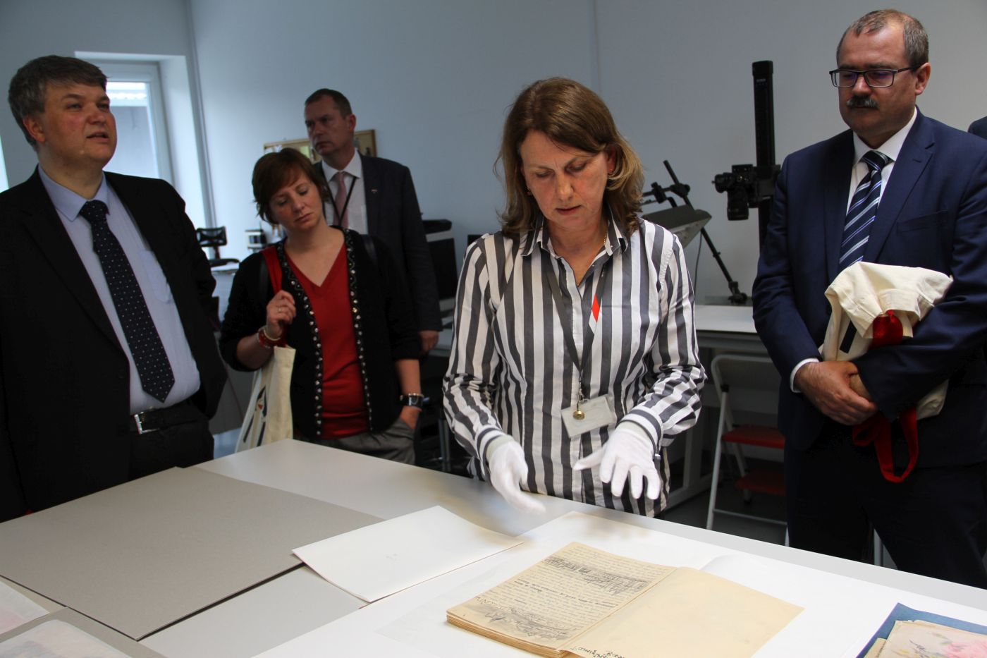 Następnie goście odwiedzili magazyn, w którym zgromadzone są dokumenty po byłych wojskowych służbach PRL, pracownię digitalizacji oraz pracownię konserwacji dokumentów, gdzie mieli możliwość zapoznania się z podstawowymi zasadami przechowywania, zabezpieczania i konserwacji archiwaliów.