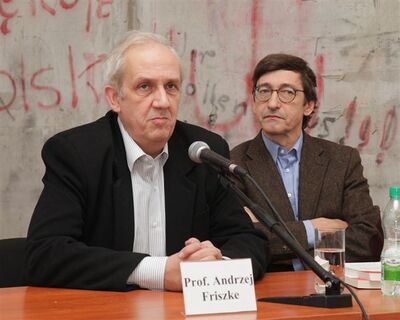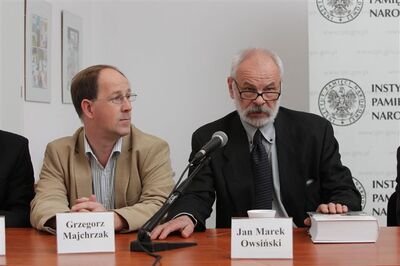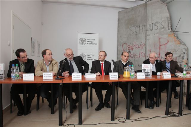 Uczestnicy dyskusji: dr Bartosz Kaliski, Grzegorz Majchrzak, Jan Marek Owsiński, dr Łukasz Kamiński, Basil Kerski, prof. Andrzej Friszke, dr Jan Skórzyński