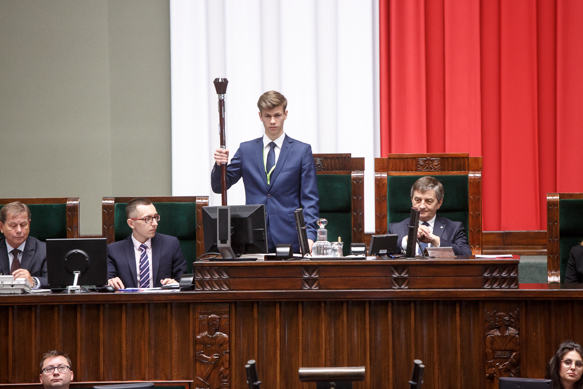 Młodych uczestników sesji sejmowej przywitał marszałek Sejmu Marek Kuchciński. Wśród gości specjalnych znaleźli się wiceminister edukacji Maciej Kopeć, Rzecznik Praw Dziecka Mikołaj Pawlak i wiceprezes Instytutu Pamięci Narodowej Mateusz Szpytma.