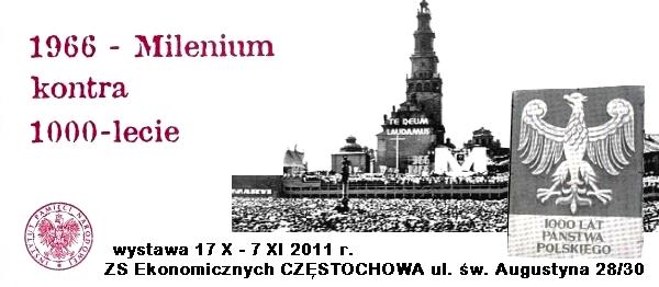 W dniach od 17 października do 7 listopada 2011 r. w Zespole Szkół Ekonomicznych w Częstochowie (ul. św. Augustyna 28/30) jest prezentowana wystawa "1966 - Millenium kontra 1000-lecie". Autorami ekspozycji są historycy z Oddziałowego Biura Edukacji Publicznej IPN w Poznaniu - dr Stanisław Jankowiak i Filip Leśniak. Wystawa przedstawia uroczyste obchody tysiąclecia przyjęcia przez Polskę chrześcijaństwa w 1966 r. oraz wysiłki podejmowane przez władze komunistycznej, aby przeszkodzić tym uroczystościom. Organizatorem prezentacji wystawy jest OBEP IPN w Katowicach przy współudziale Zespołu Szkół Ekonomicznych w Częstochowie, Stowarzyszenia Solidarność Walcząca oraz Stowarzyszenia Więzionych, Internowanych i Represjonowanych WIR w Częstochowie.