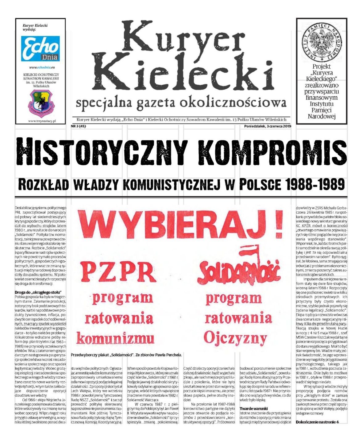 Z okazji 30. rocznicy wyborów kontraktowych 1989 roku Instytut Pamięci Narodowej przygotował specjalne dodatki historyczne do prasy: