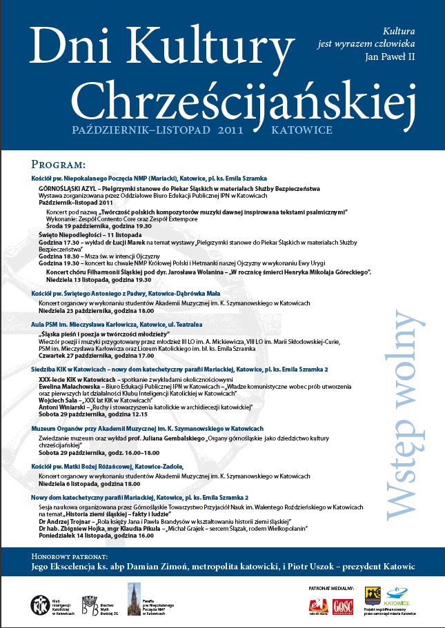 29 października 2011 r. w siedzibie Klubu Inteligencji Katolickiej w Katowicach (Nowy Dom Katechetyczny parafii pw. Niepokalanego Poczęcia NMP, Katowice, pl. ks. Emila Szramka 2) odbyła się uroczystość z okazji 30. rocznicy powstania katowickiego Klubu. Spotkanie, podczas którego zostały wygłoszone referaty okolicznościowe, odbyło się w ramach Dni Kultury Chrześcijańskiej. Do końca listopada 2011 r. w kościele Niepokalanego Poczęcia NMP jest prezentowana wystawa katowickiego OBEP „Górnośląski Azyl. Pielgrzymki stanowe do Piekar Śląskich w materiałach Służby Bezpieczeństwa”.