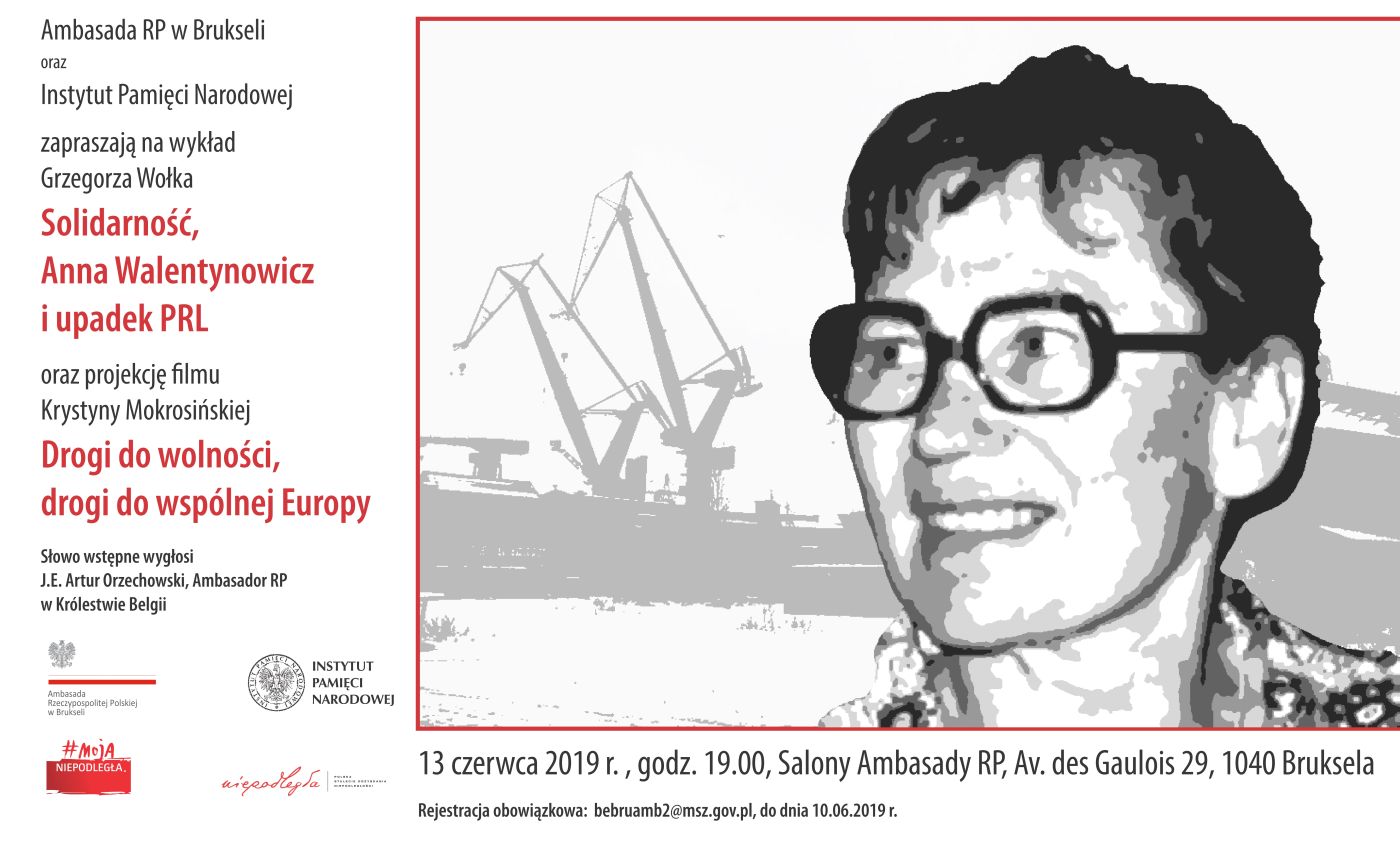 Spotkanie otworzył Artur Orzechowski, Ambasador RP w Królestwie Belgii, przypominając o tegorocznych, ważnych dla upadku komunizmu w Polsce rocznicach oraz roli NSZZ „Solidarność”. Wykład pt. „Solidarność, Anna Walentynowicz i upadek PRL” wygłosił Grzegorz Wołk, pracownik Biura Badań Historycznych IPN. Po dyskusji wyświetlono film Krystyny Mokrosińskiej pt. „Drogi do wolności, drogi do wspólnej Europy”.