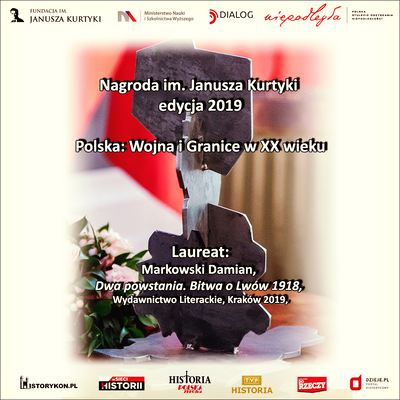 Z radością informujemy, że w III edycji konkursu o Nagrodę im. Janusza Kurtyki, organizowanym przez Fundację im. Janusza Kurtyki, zwyciężyła książka dr. Damiana K. Markowskiego Dwa powstania. Bitwa o Lwów 1918 (Wydawnictwo Literackie, Kraków 2019)