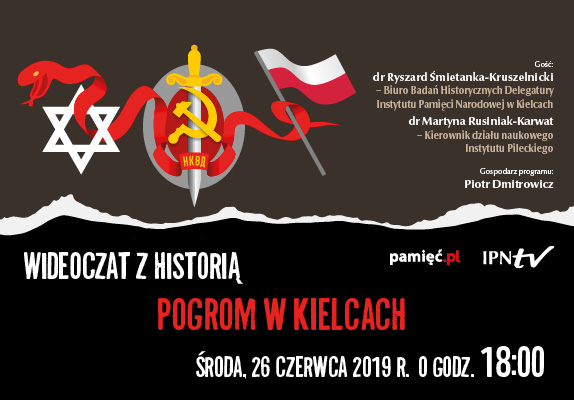 W środę, 26 czerwca 2019 roku, w „Wideoczacie z historią” dyskutowano o tym, co wydarzyło się 4 lipca 1946 roku w Kielcach, jakie tajemnice kryje w sobie potworny mord kielecki.