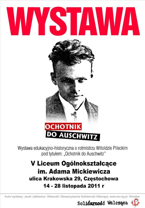 W dniach 14–28 listopada 2011 r. w V Liceum Ogólnokształcącym im. Adama Mickiewicza w Częstochowie (ul. Krakowska 29) jest prezentowana wystawa „Rotmistrz Witold Pilecki – ochotnik do Auschwitz”. Ekspozycja została przygotowana przez Jacka Jaśkiewicza ze Stowarzyszenia Solidarność Walcząca. Organizatorem prezentacji wystawy jest OBEP IPN w Katowicach we współpracy z V LO w Częstochowie i Stowarzyszeniem Solidarność Walcząca we Wrocławiu.
