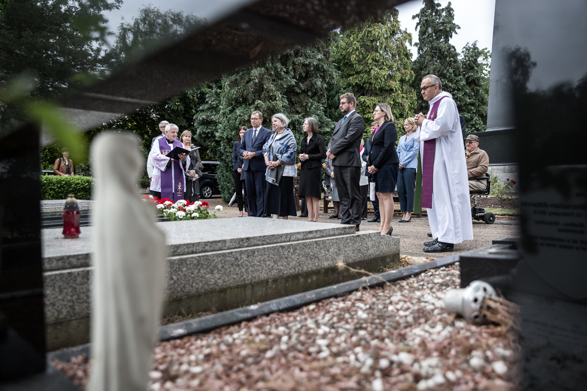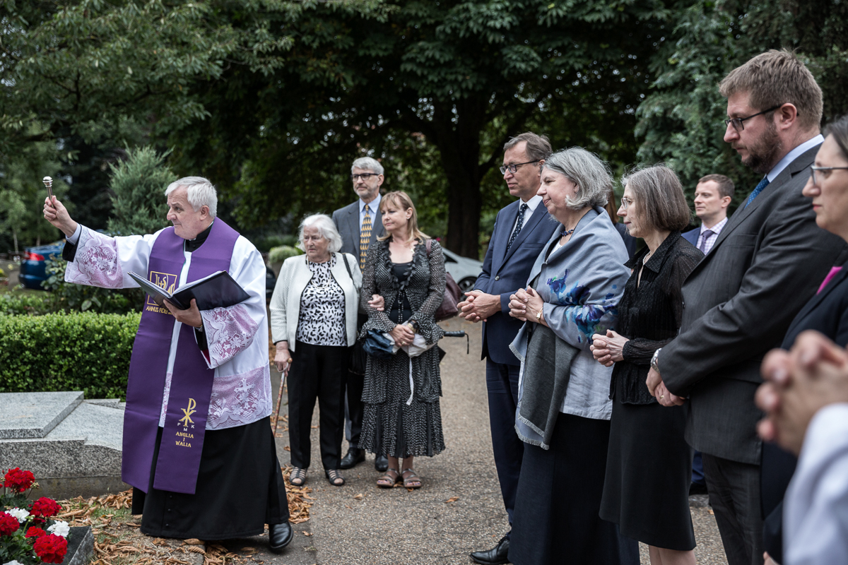 Prezes IPN Jarosław Szarek i przedstawiciele Instytutu wraz z dziećmi Kazimierza Sabbata: Jolantą, Barbarą i Janem złożyli wieńce na grobie prezydenta na cmentarzu Gunnersbury – Londyn, 19 lipca 2019. Fot. Sławek Kasper (IPN)