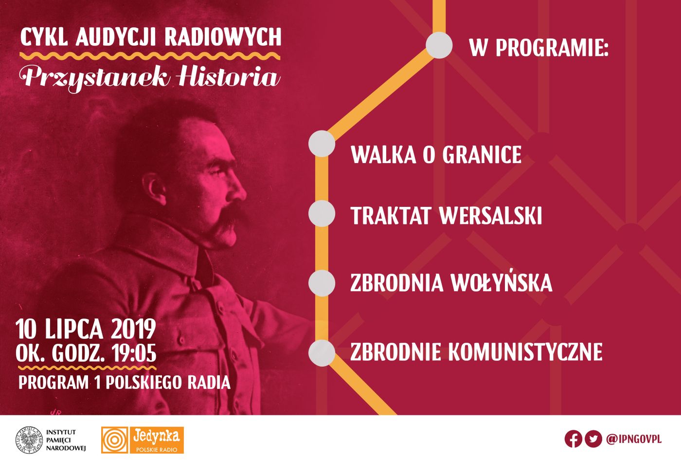 Cykl audycji „Przystanek Historia” realizowany jest wspólnie przez Instytut Pamięci Narodowej i Program I Polskiego Radia. Audycje będą emitowane na antenie radiowej Jedynki co dwa tygodnie, w każdą środę – od lipca do grudnia 2019 r. Rozmowy poświęcone będą ważnym wydarzeniom, które wpłynęły na dzieje Polski w XX wieku oraz ludziom, którzy tę historię tworzyli.