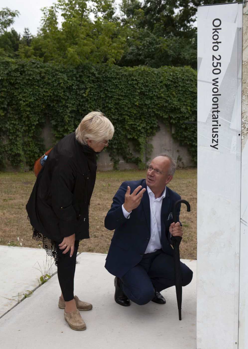 Prezes Związku Polaków w Melbourne Zofia Dublaszewska z wiceprezesem IPN Krzysztofem Szwagrzykiem na warszawskiej „Łączce”. Fot. Anna Boguniecka (IPN) -