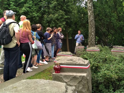 Na mapie nekropolii jest około trzydziestu pięciu miejsc związanych z historią powstania warszawskiego. Są to zarówno obszerne kwatery żołnierskie, jak i samodzielne pomniki. Do tej liczby powinniśmy doliczyć jeszcze groby indywidualne i rodzinne, w których spoczęli polegli lub zmarli po wojnie powstańcy. W trakcie spaceru odwiedziliśmy osiem wybranych lokalizacji, poznając historię cmentarza, dzieje polskiej konspiracji, historię walk w niektórych częściach stolicy oraz losy wybranych oddziałów. Prowadzący opowiedział także o powojennych pracach ekshumacyjnych i ich wpływie na dzisiejszy kształt cmentarza.