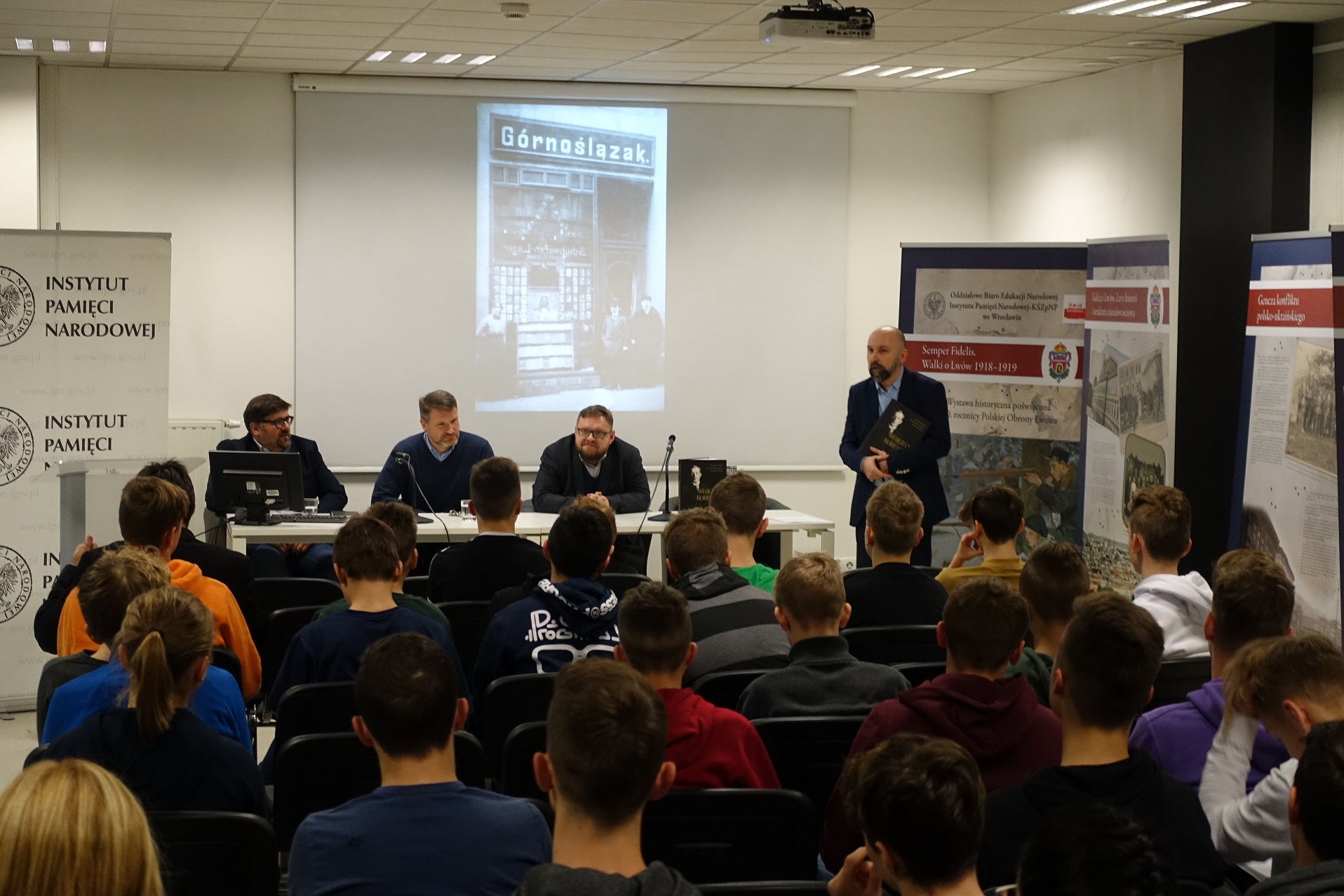W konferencji wzięli udział: dr Andrzej Sznajder, dyrektor Oddziału IPN w Katowicach, Ryszard Mozgol, naczelnik Oddziałowego Biura Edukacji Narodowej IPN w Katowicach, Jan Kwaśniewicz, naczelnik Oddziałowego Biura Upamiętniania Walk i Męczeństwa IPN w Katowicach oraz dr Mirosław Węcki z Oddziałowego Biura Badań Historycznych IPN w Katowicach. Zaprezentowano działania edukacyjne, publikacje oraz upamiętnienia, przygotowane przez katowicki oddział IPN w 100. rocznicę wybuchu I Powstania Śląskiego.
