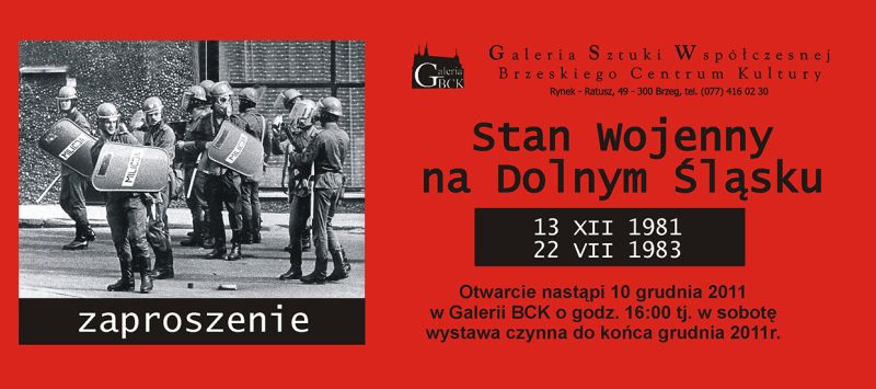 W dniach 10–31 grudnia br. w Galerii Brzeskiego Centrum Kultury (Rynek – Ratusz) prezentowana jest wystawa „Stan wojenny na Dolnym Śląsku”. W uroczystości otwarcia wystawy, która odbyła się 10 grudnia, wziął udział naczelnik Delegatury IPN w Opolu – prof. dr hab. Krzysztof Kawalec. Na ekspozycję, przygotowaną przez Oddziałowe Biuro Edukacji Publicznej IPN we Wrocławiu, składa się kilkadziesiąt plansz, przedstawiających dokumenty i zdjęcia obrazujące stan wojenny na Dolnym Śląsku.