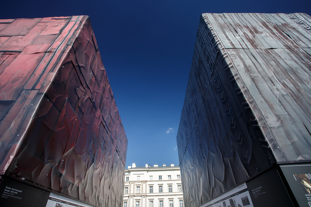 Wystawa IPN „Ściany totalitaryzmów. Polska 1939–1945” („Between the Walls. Poland under totalitarian regimes 1939–1945”) prezentowana jest w dwóch konfiguracjach przestrzennych. Pod względem wizualnym, artystycznym oraz merytorycznym porusza tematykę historii dwóch totalitaryzmów: Rzeszy Niemieckiej oraz Rosji Sowieckiej. Osią narracji jest wybuch II wojny światowej, jego tragiczne konsekwencje oraz walka Polaków o wolność z dwoma okupantami. W dramatyczne realia wojny wprowadzają teksty kuratorskie i fotografie, umieszczone na zewnętrznych ścianach instalacji. Wystawa została uroczyście otwarta 22 sierpnia o godz. 12.00.