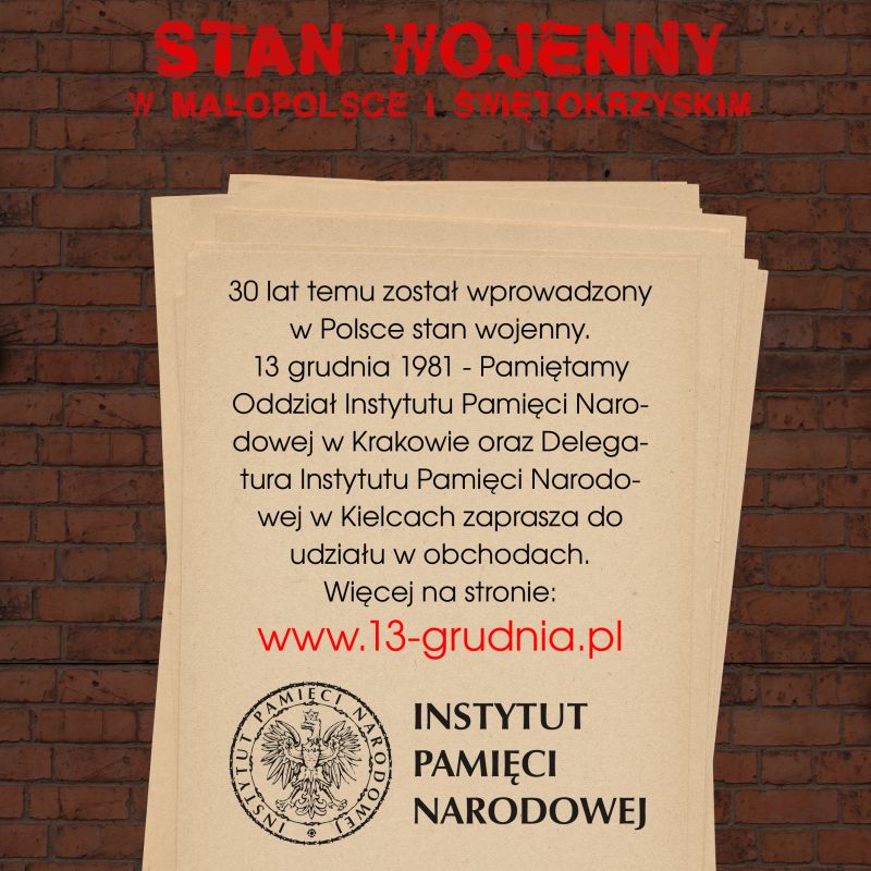 7 grudnia 2011 r. w siedzibie IPN w Krakowie, przy ul. Reformackiej 3, odbyła się konferencja prasowa zatytułowana „Stan wojenny na wokandzie historii”. Spotkanie dotyczyło krakowskich obchodów 30. rocznicy stanu wojennego.