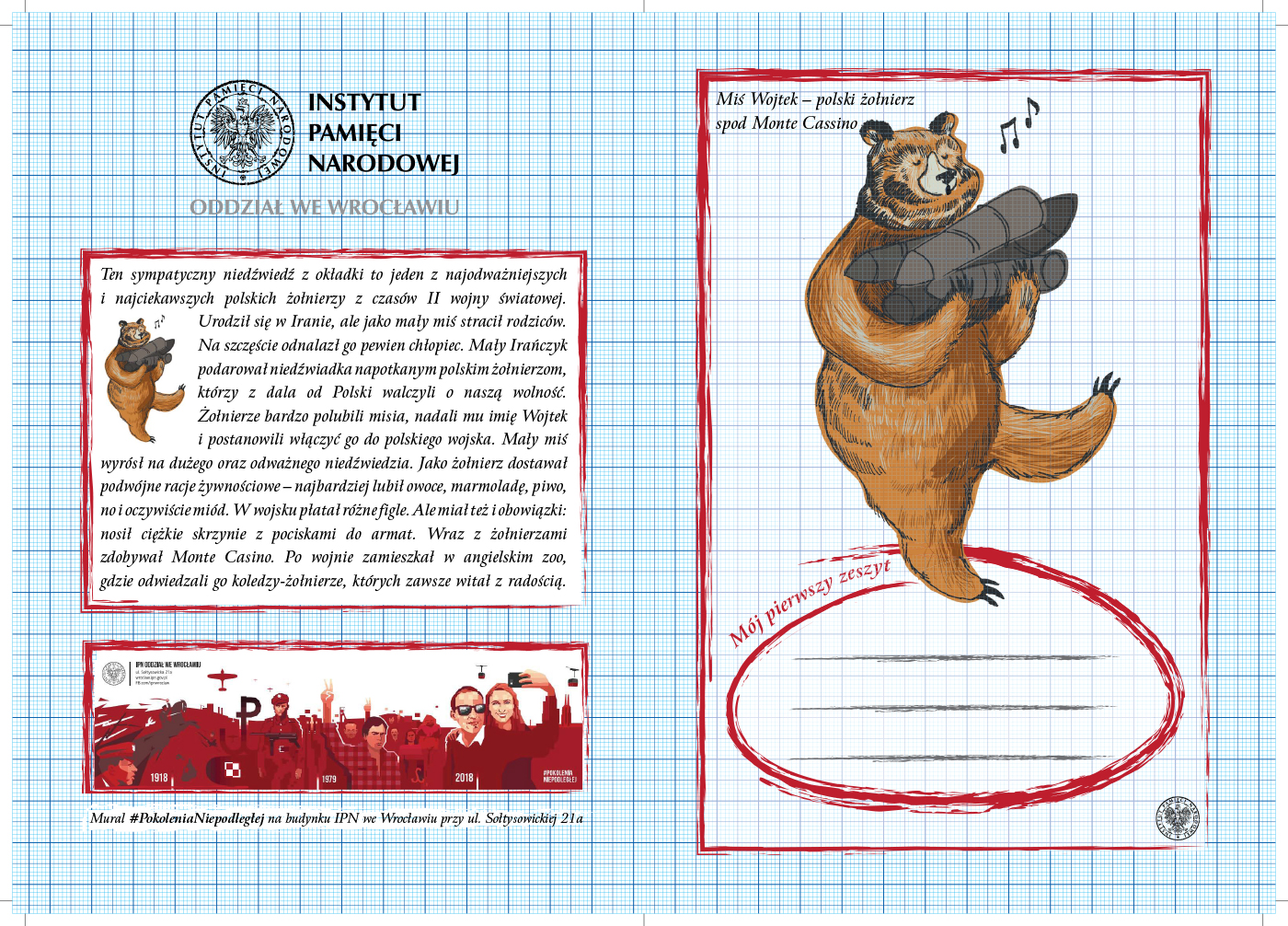 Ten sympatyczny miś będzie towarzyszył najmłodszym uczniom na ich pierwszych lekcjach, a zamieszczony na ostatniej stronie okładki krótki opis wojennych, a także i późniejszych losów niedźwiadka Wojtka z pewnością przybliży dzieciom postać tego dzielnego żołnierza.
