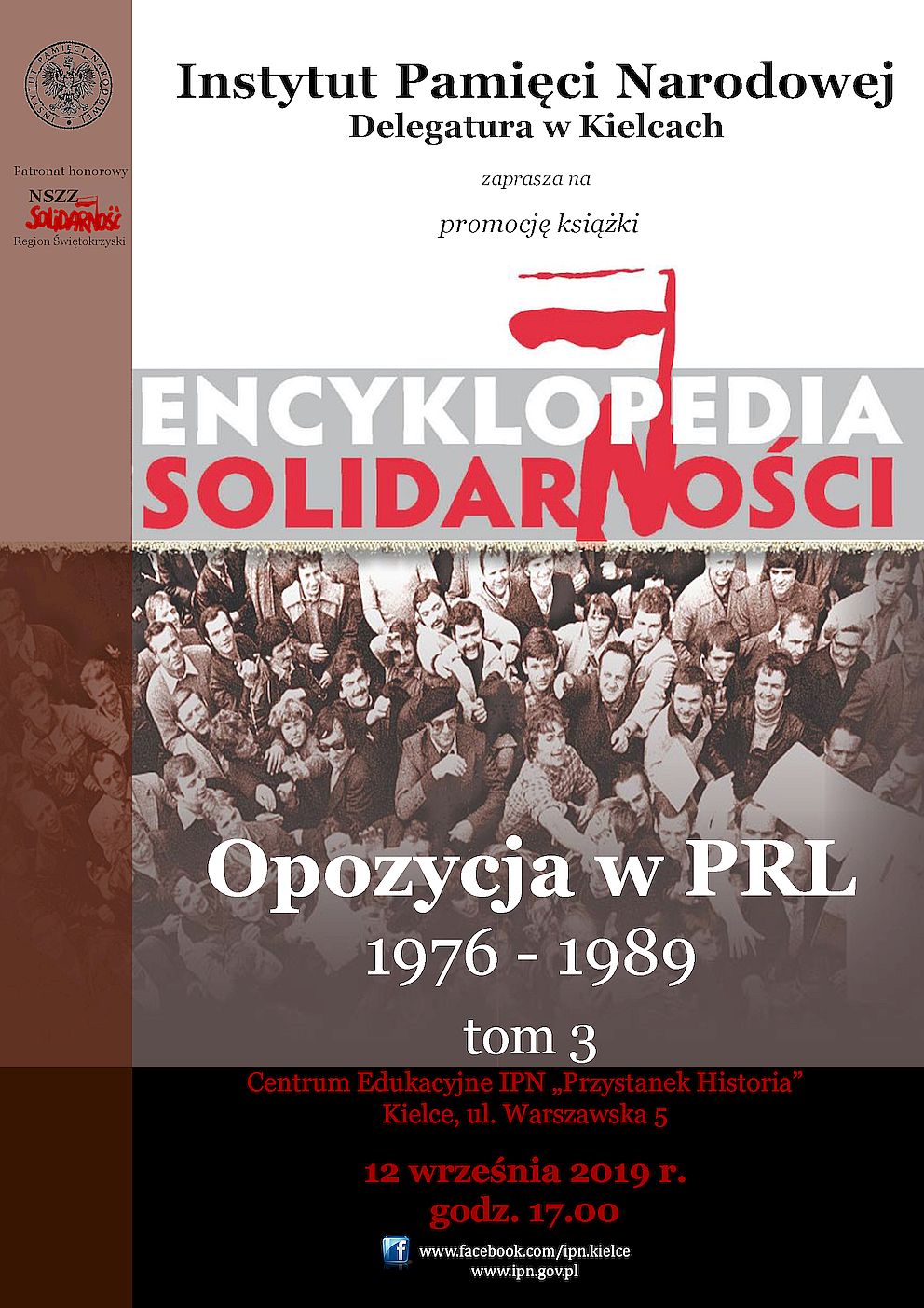 12 września w Centrum Edukacyjnym „Przystanek Historia” IPN w Kielcach zaprezentowany został III tom wydawnictwa „Encyklopedia Solidarności. Opozycja w PRL 1976–1989”. Opublikowano w nim ponad półtora tysiąca tekstów. Odegrały one istotną rolę dla rozwoju i funkcjonowania środowisk opozycji w wielu miastach Polski.