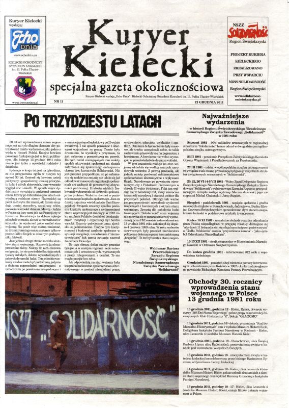 12 grudnia 2011 r. ukazał się dodatek specjalny do kieleckiej gazety codziennej „Echo Dnia” zatytułowany „Kuryer Kielecki specjalna gazeta okolicznościowa”, nr 11, poświęcony 30 rocznicy wprowadzenia stanu wojennego.