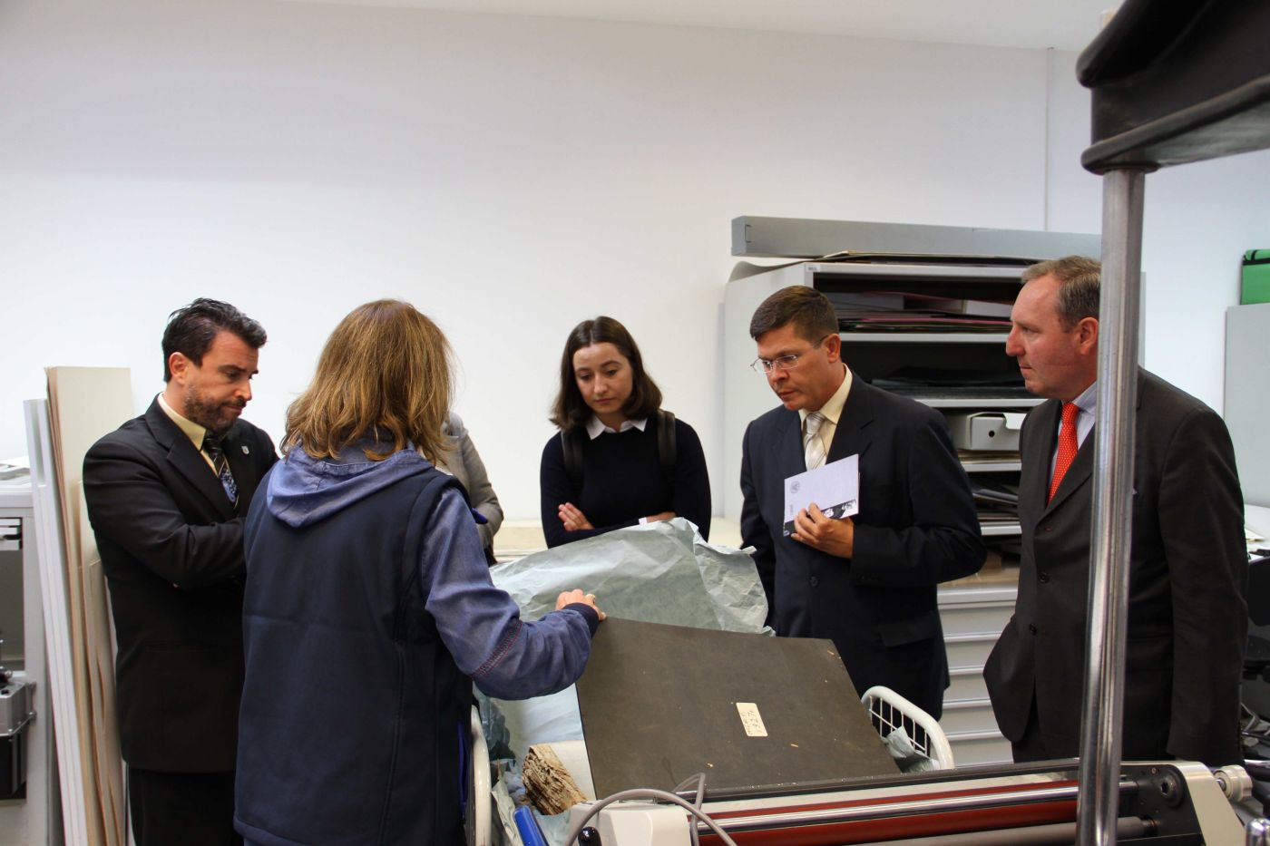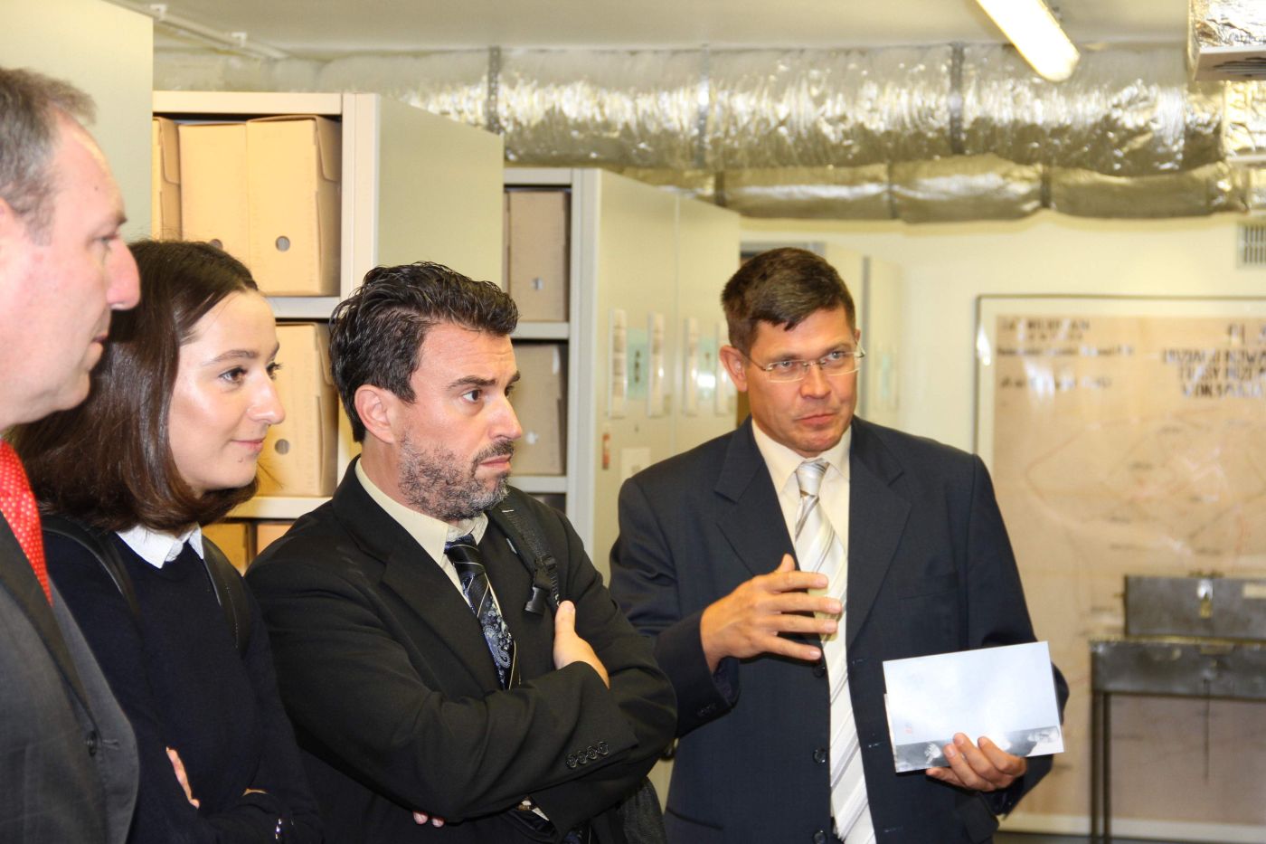 Delegatów powitał zastępca dyrektora AIPN dr Mariusz Żuławnik, który opowiedział o zasobie i zadaniach naszego Archiwum. Następnie goście zwiedzili Pracownię Konserwacji Dokumentów, gdzie mieli okazję zobaczyć „Dziennik Związkowy” – jedno z najstarszych archiwaliów pozyskanych do zasobu. Na zakończenie wizyty archiwiści z Wiednia odwiedzili magazyn akt wojskowych i poznali rodzaje zgromadzonej w nim dokumentacji.