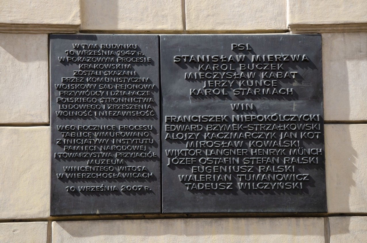 10 września 2019 r. Zarząd Obszaru Południowego Zrzeszenia „Wolność i Niezawisłość” w Krakowie zorganizował uroczystość upamiętniającą 72. rocznicę wyroków w pokazowym procesie działaczy WiN i PSL. Pod tablicą na budynku dawnego sądu przy ul. Senackiej (obecnie Muzeum Archeologiczne) kwiaty złożył m.in. dyrektor Oddziału IPN w Krakowie dr hab. Filip Musiał.