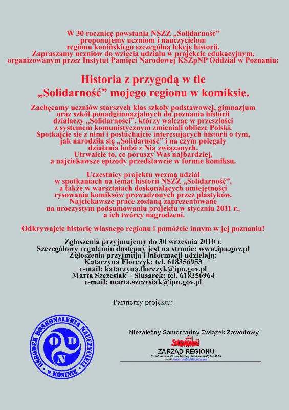 Projekt realizowany był od września 2010 roku co wiązało się z uroczystymi obchodami 30 rocznicy powstania NSZZ „Solidarność”. W projekcie brali udział uczniowie ze szkół podstawowych, gimnazjów oraz szkół ponadgimnazjalnych regionu konińskiego. Ich celem było poznanie historii działaczy „Solidarności”, którzy walcząc z systemem komunistycznym zmieniali oblicze Polski.