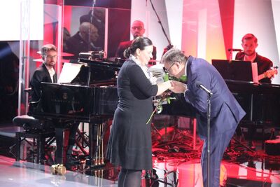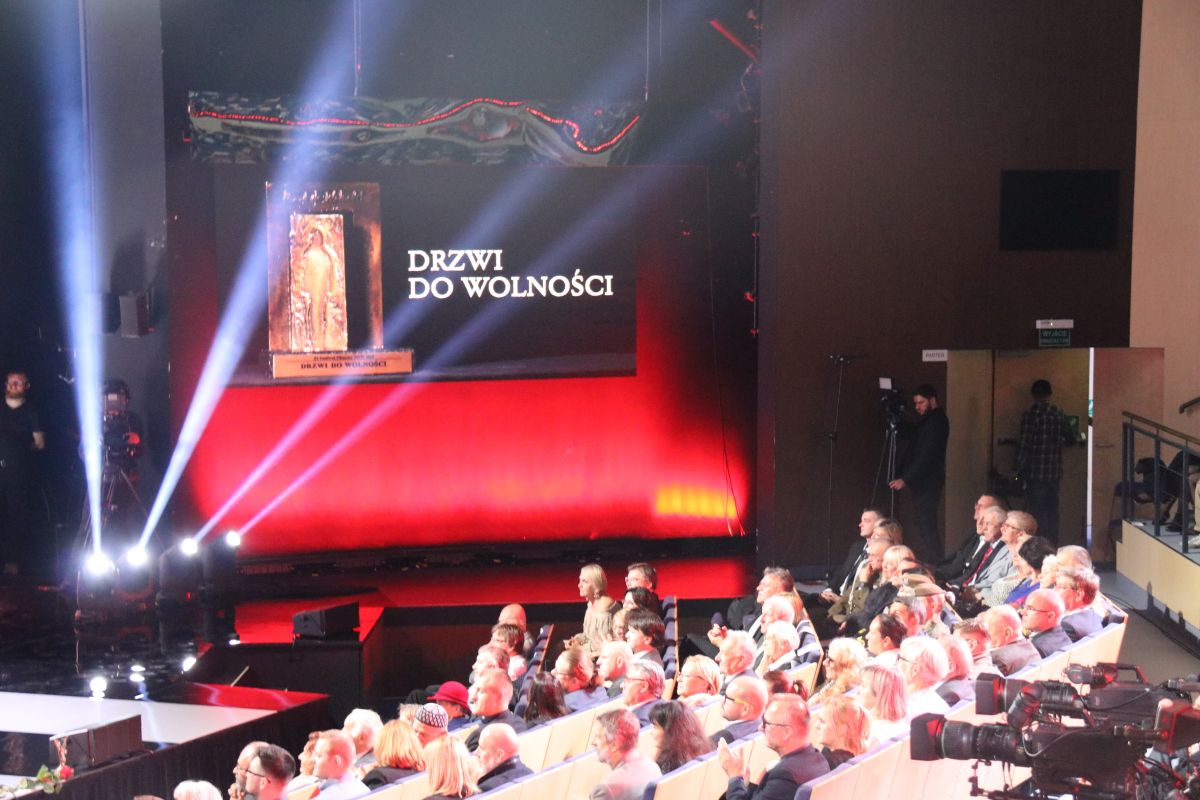 Prezes IPN dr Jarosław Szarek wręczył nagrodę „Drzwi do wolności”, którą odebrała Anca Maria Cernea z Rumunii dla swoich rodziców, rumuńskich opozycjonistów – Elsy Anki-Barbus oraz Ioana Barbusa.