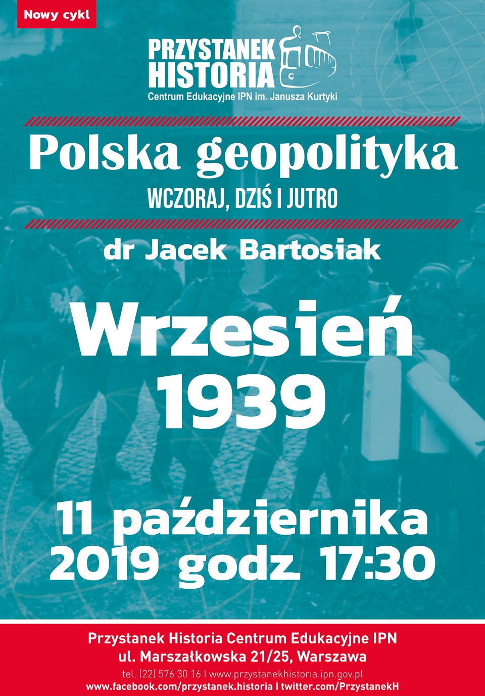 11 października 2019 roku, w Centrum Edukacyjnym IPN im. Janusza Kurtyki „Przystanek Historia” w Warszawie, dr Jacek Bartosiak wygłosił wykład „Wrzesień 1939”. Było to kolejne spotkanie z cyklu „Polska geopolityka wczoraj, dziś i jutro”.