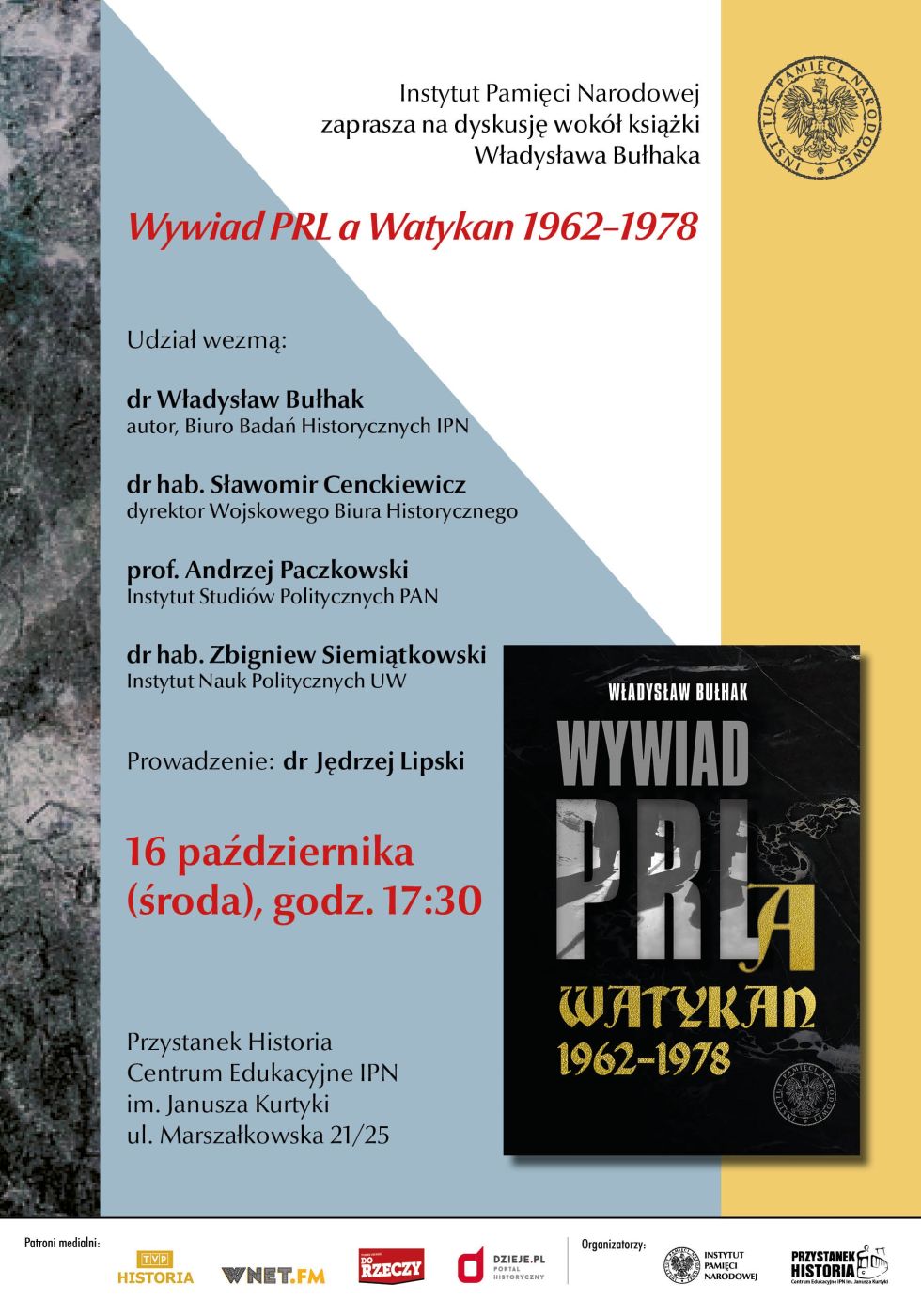 16 października 2019 roku, w Centrum Edukacyjnym IPN im. Janusza Kurtyki „Przystanek Historia” w Warszawie, odbyła się dyskusja wokół książki Władysława Bułhaka „Wywiad PRL a Watykan 1962–1978”.